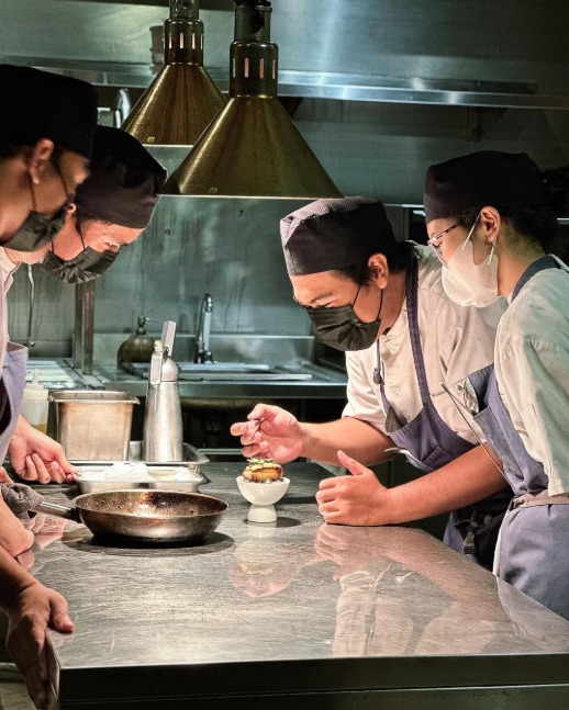 Begitu melangkah masuk, kamu tak sekadar jadi tamu, tapi bagian dari sebuah seni pertunjukan. Di ruang intim dengan dapur terbuka, para koki menyusun setiap hidangan seperti babak dalam drama rasa, disajikan tepat di depan mata Anda. Gerak mereka presisi, seperti koreografi yang dirancang untuk satu tujuan, yaitu menghadirkan pengalaman yang tak hanya lezat, tapi juga memukau seluruh pancaindra.